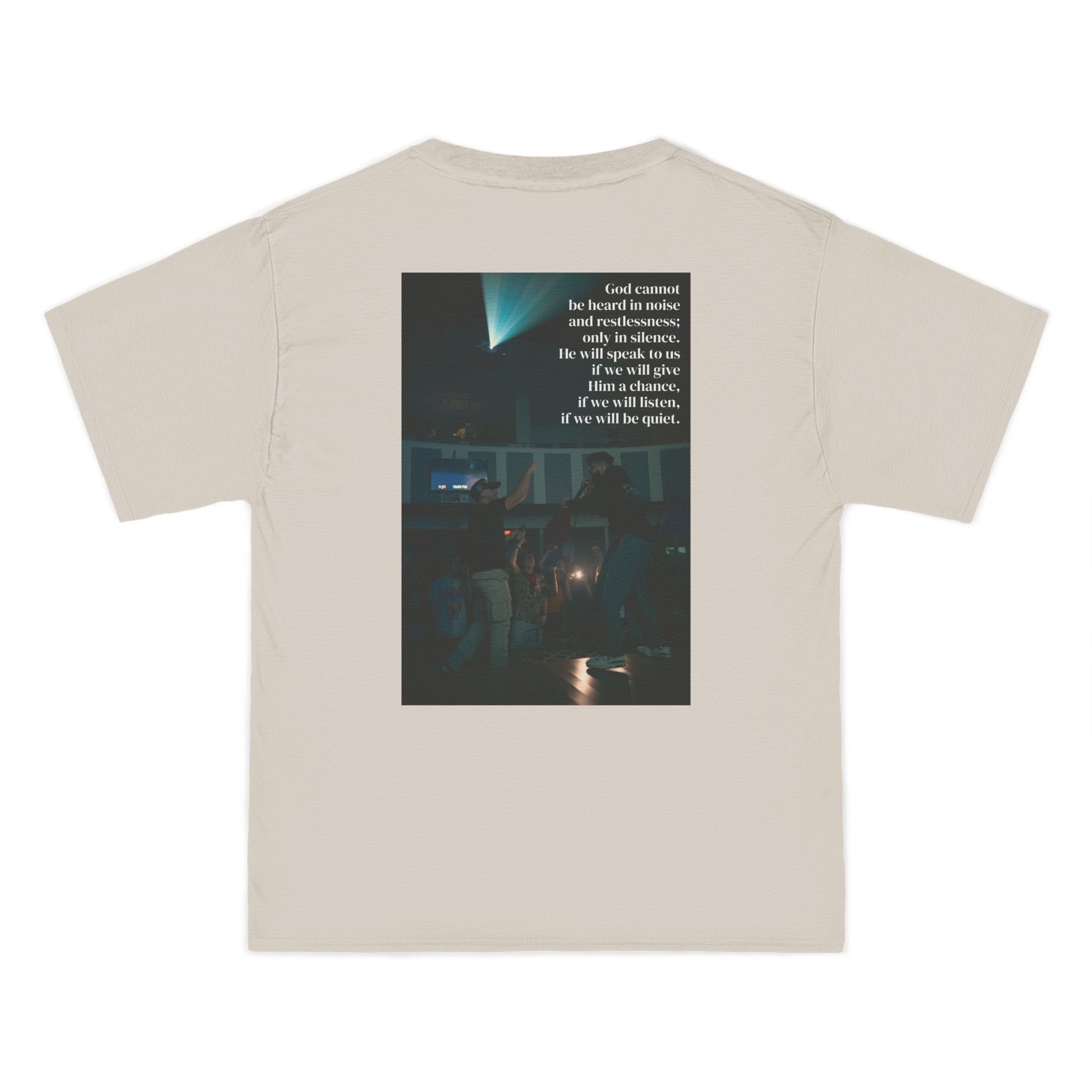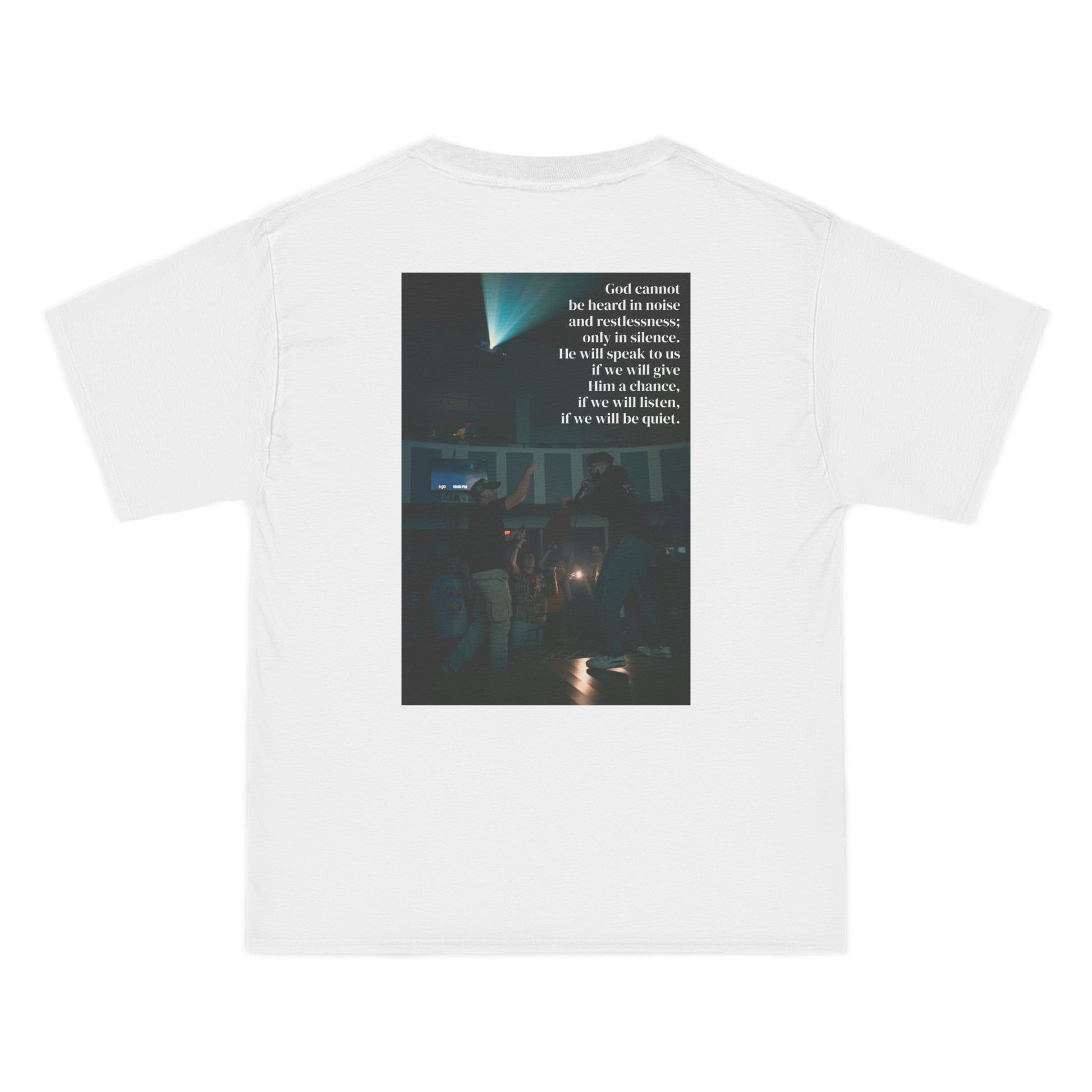 THE LISTEN HEAVY TEE IS A REMINDER TO REMOVE ANY DISTRACTIONS.